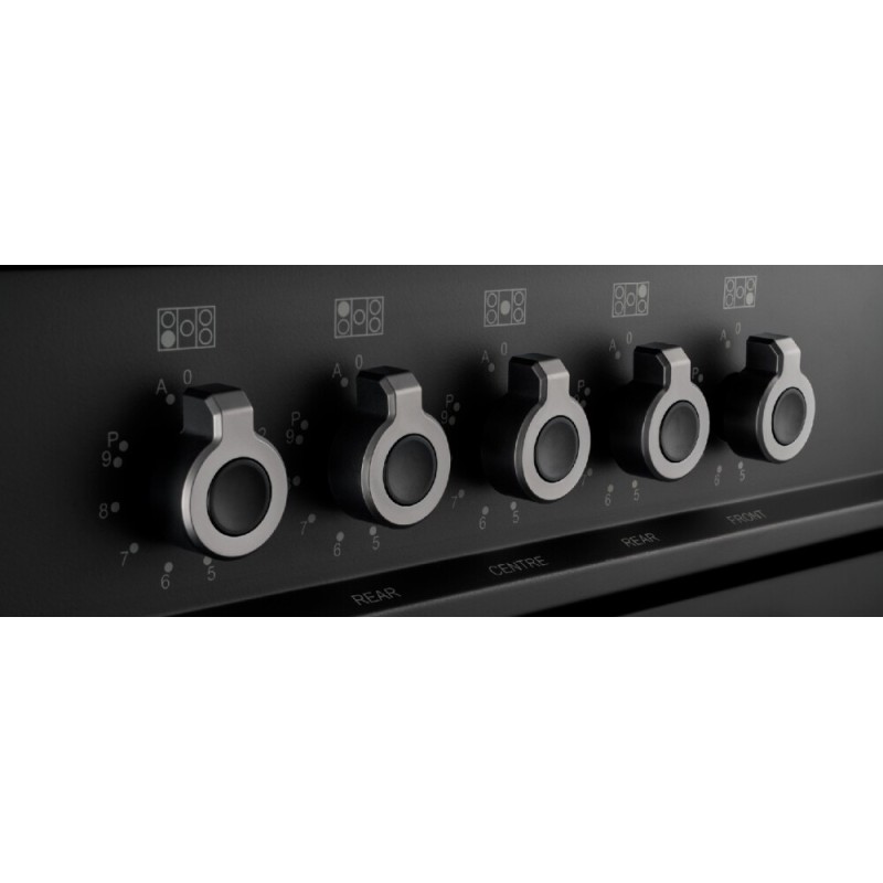 Induction cooker PRO105I2ECAT from the Professional line is equipped with 5 induction zones, two of which are flex zones. The induction hob heats up quickly, it is cool to the touch because only the areas under the pans are turned on, all cooking areas can be used at the same time, as well as the oven for baking or roasting and the booster function allows you to quickly reach the point boiling point for more efficient cooking. It is equipped with a double oven which allows great versatility and adds a touch of style to the kitchen. The main oven has 11 cooking functions. The useful auxiliary static oven has 6 cooking functions. The kitchen is equipped with a digital programmer that provides immediate feedback on the oven functions. Matt black finish