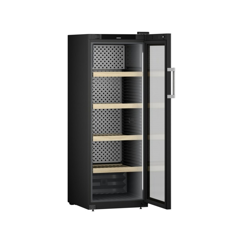 Cantina vini a libera installazione WPbli 5031 della linea Grandcru Selection é dotato di compressori sviluppati in modo speciale, con vibrazioni estremamente ridotte e fanno sì che i vini possano essere conservati in modo delicato in tutte le cantine. Il nuovo blocco display, attivabile tramite menu, protegge i vini con un blocco porta tramite il PIN a tre cifre che salvaguarda le impostazioni e, di conseguenza, le condizioni ottimali per il vino. Se la porta della cantina climatizzata resta aperta per più di 60 secondi, scatta l’allarme; si tratta di un allarme acustico accompagnato da una luce lampeggiante dell’apparecchiatura. L’ausilio di riempimento EasyFill fa sì che la porta della cantina per vini resti aperta a partire da un’angolatura di 90°, per rendere il riempimento particolarmente agevole. E grazie al meccanismo di chiusura automatica SelfClosing, la porta si chiude da sola quando l’angolo di apertura è inferiore a 90°. Per garantire che l’invecchiamento del vino avvenga in condizioni di qualità dell’aria ottimali, la cantina é provvista di un filtro ai carboni attivi che neutralizza ogni tipo di odore in modo affidabile. Con HumiditySelect si può regolare sul display due stadi di umidità: standard ed elevata. L'illuminazione LED dall’alto, illumina tutto il vano interno; i LED si trovano nella parte frontale, affinché non sia in ombra nessuna bottiglia. La pratica funzione EasyFill fa sì che la porta resti aperta a partire da un angolo di 90° per consentire di riempire la cantina agevolmente. Lo Box SmartDevice é integrabile in un secondo momento. Dispone dell'Allarme temperatura che segnala acusticamente e visivamente eventuali scostamenti dal valore impostato e del sistema TempProtect Plus che misura costantemente la temperatura con due sensori; in questo modo i vini saranno doppiamente protetti dalle variazioni di temperatura. L’eccellente qualità del design del display tattile LC consente di selezionare facilmente tutte le funzioni. Le voci di menu sono ben strutturate e per selezionarle basta un leggero tocco con un dito. Finitura Nero