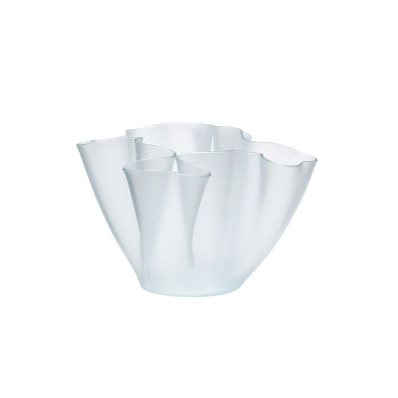 Cartoccio is an object of refined originality designed in 1932 by master Pietro Chiesa in 1932 for FontanaArte. The body of the vase opens upwards with an asymmetrical wave movement, reminiscent of the behavior of a sheet of paper. Designed to house a bunch of flowers in which each curvature holds a stem, forming a balanced overall composition. The sheet of glass of which it is composed is handcrafted, curvature by curvature, guaranteeing absolute uniqueness to each piece.