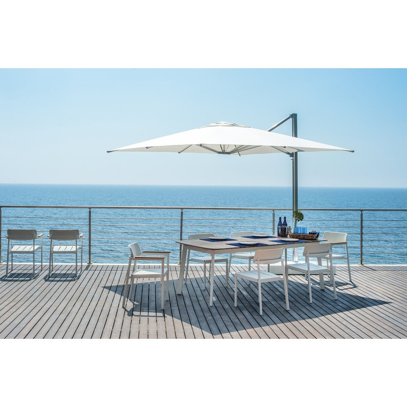 Navona is a collection of side pole umbrellas equipped with various accessories that increase their performance to the point of transforming them into a shading system with all the comforts. The result of exceptional technological research, they are the ideal complement for the outdoors and make the living and dining areas of public and domestic spaces highly functional.
